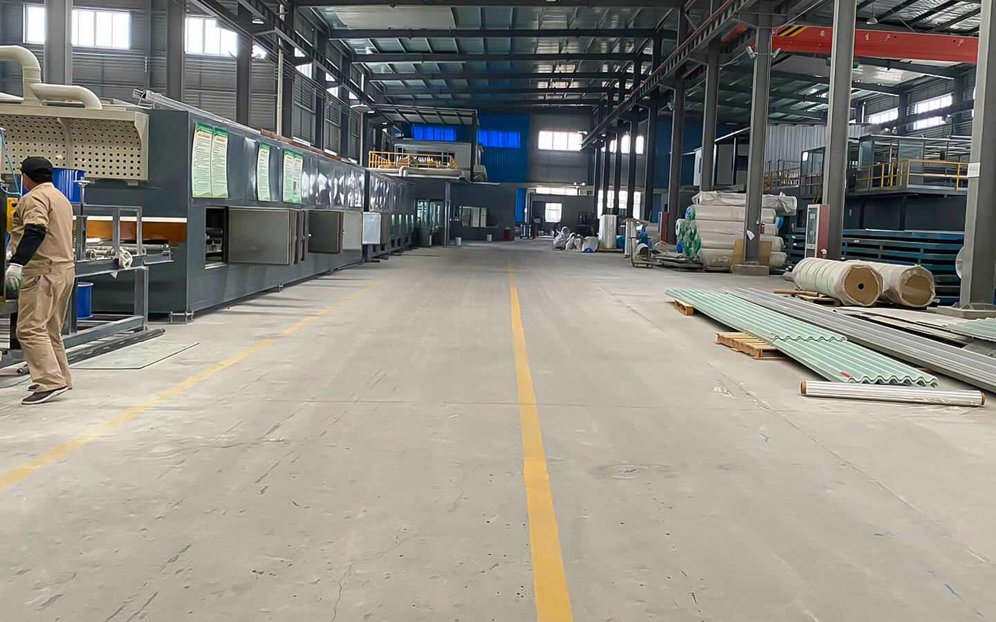 泰州中盛機電有限公司在引進消化美國FRP自動化板材生產(chǎn)線的基礎(chǔ)上,生產(chǎn)具有高鋼性、高韌性、強耐腐性、耐候性的FRP板材。